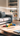 - Clean, minimalist built-in shelves in the background, adding depth and a sense of organized living.
