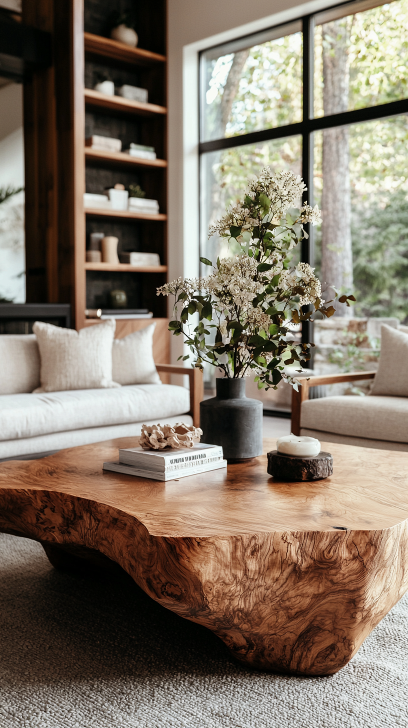 Elevate your real estate brand with this stunning, high-resolution stock photo of a sophisticated living room. The organic textures and abundant natural light create a sense of luxury and warmth, perfect for showcasing high-end properties and connecting with buyers on an emotional level. Use this versatile image across your social media, website, and marketing materials to communicate a lifestyle of refined comfort.