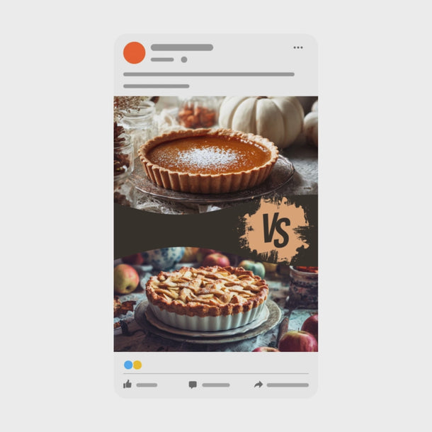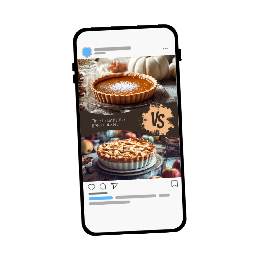 Spark instant engagement with this fun "Great Thanksgiving Debate" template. This "this-or-that" style post about pie is a surefire way to get your audience commenting and sharing.