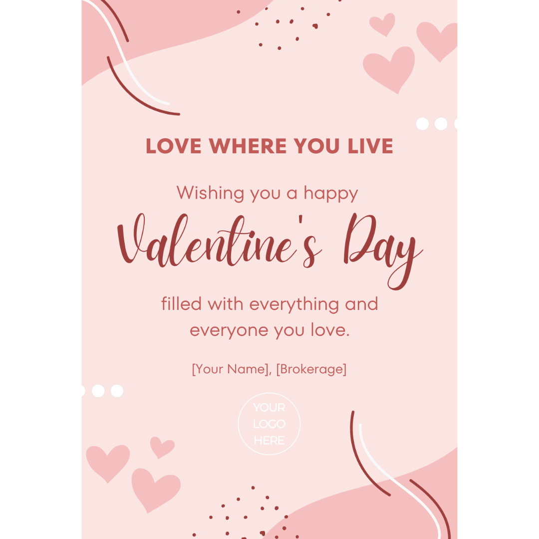 Send a warm, non-denominational greeting for Valentine's Day with this e-card template. It's a thoughtful way to connect with clients, sphere of influence, and local businesses, showing appreciation and staying top-of-mind.