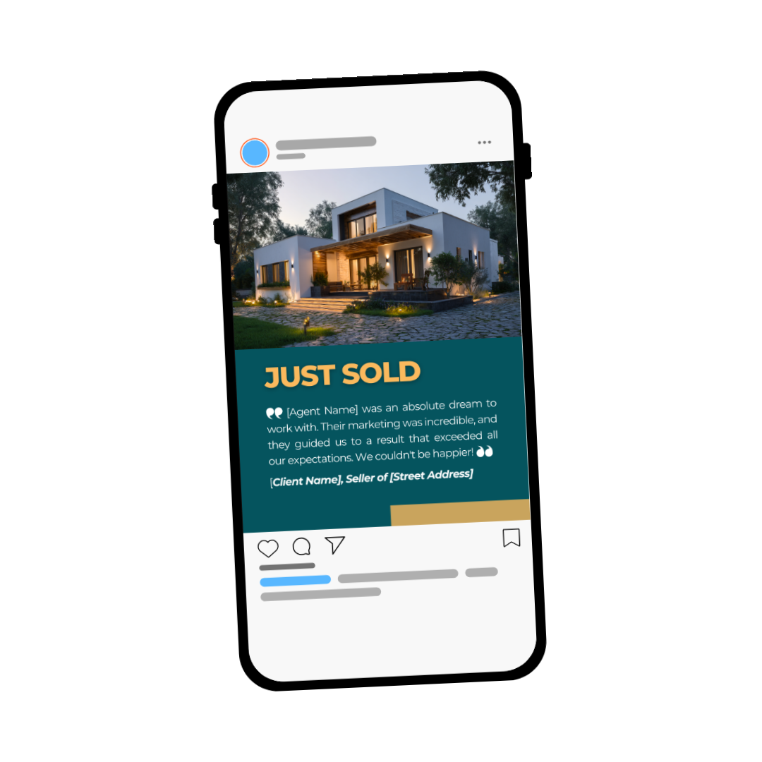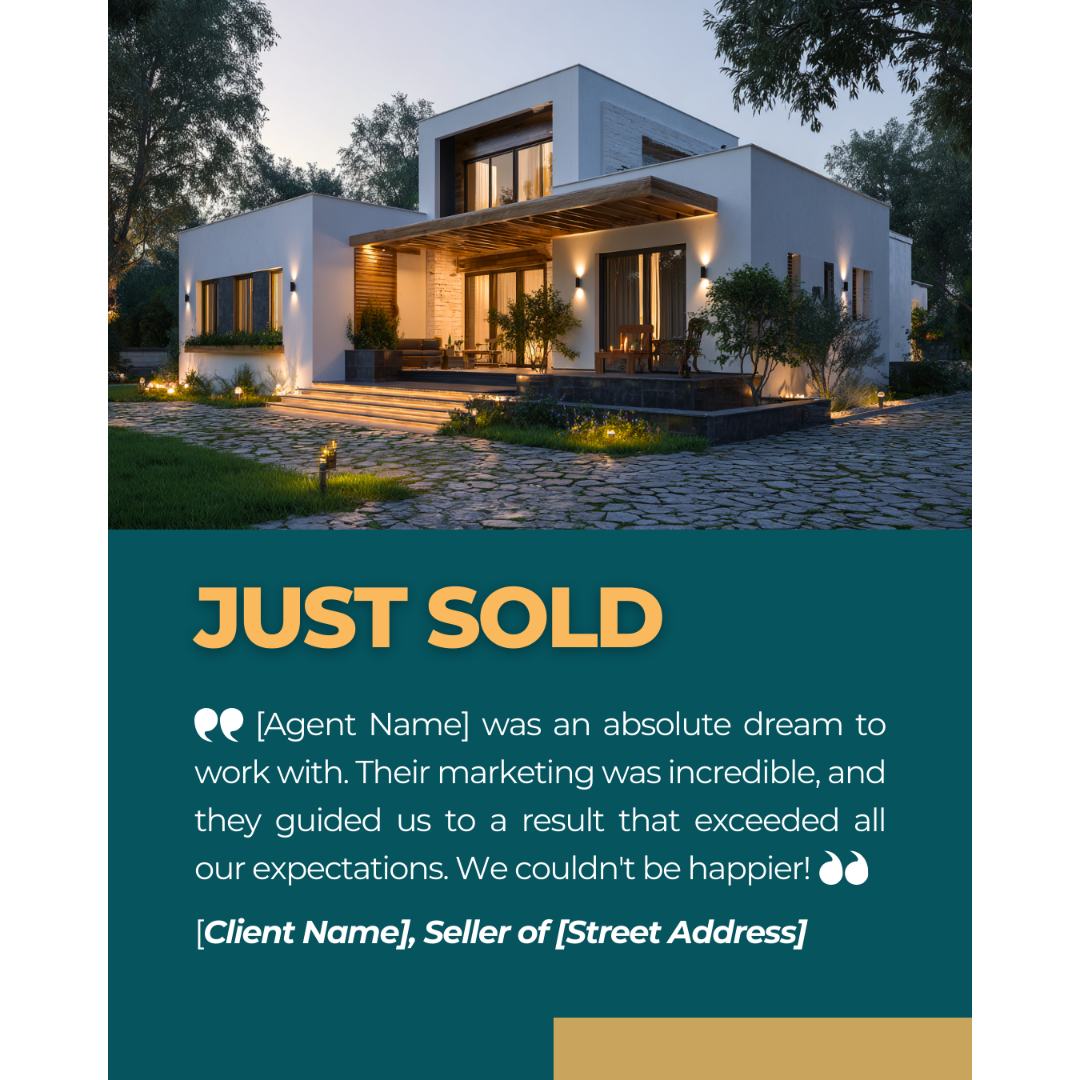 Build powerful social proof with this "Just Sold" template that features a client testimonial. This graphic combines the success of a sale with a glowing review, making it one of the most effective marketing assets for attracting new clients.