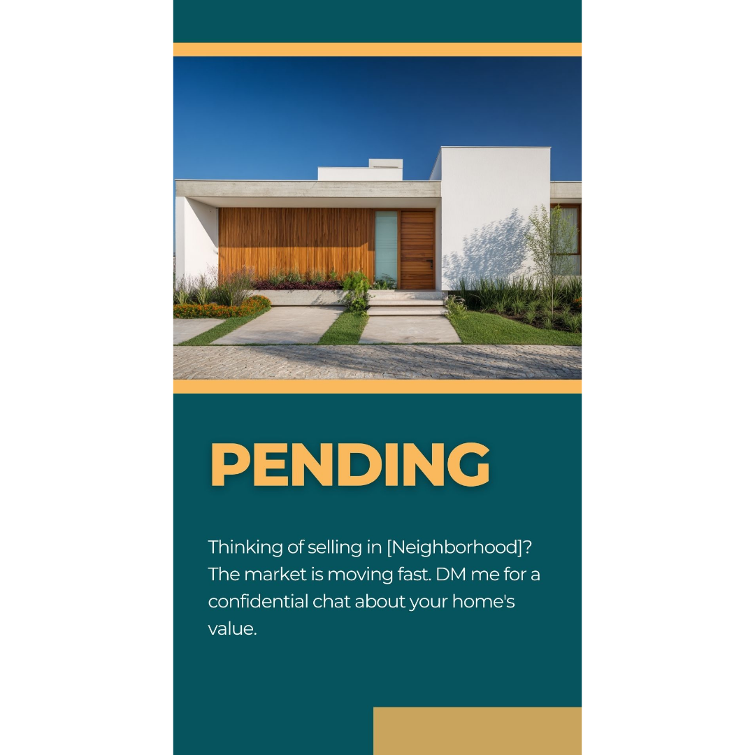Keep the buzz going even after accepting an offer. This "Pending" Reel template is perfect for announcing that a property is under contract while also reminding potential sellers in the area that the market is active.