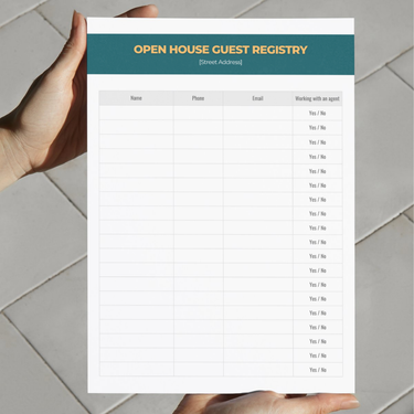 Stop using a legal pad. Start looking like the professional you are. First impressions are everything, especially at an open house. This clean, professional guest registry instantly elevates your brand, signaling to potential clients that you are organized, detail-oriented, and a true expert. It's a simple tool that makes a powerful statement about the quality of your service.