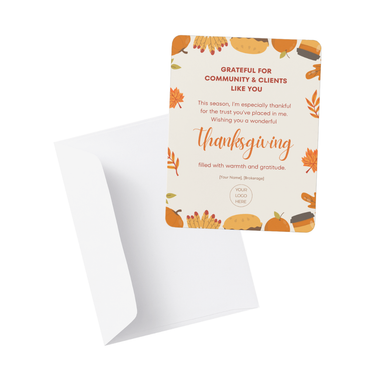 Thanksgiving themed greeting card for client appreciation with festive design and customizable text