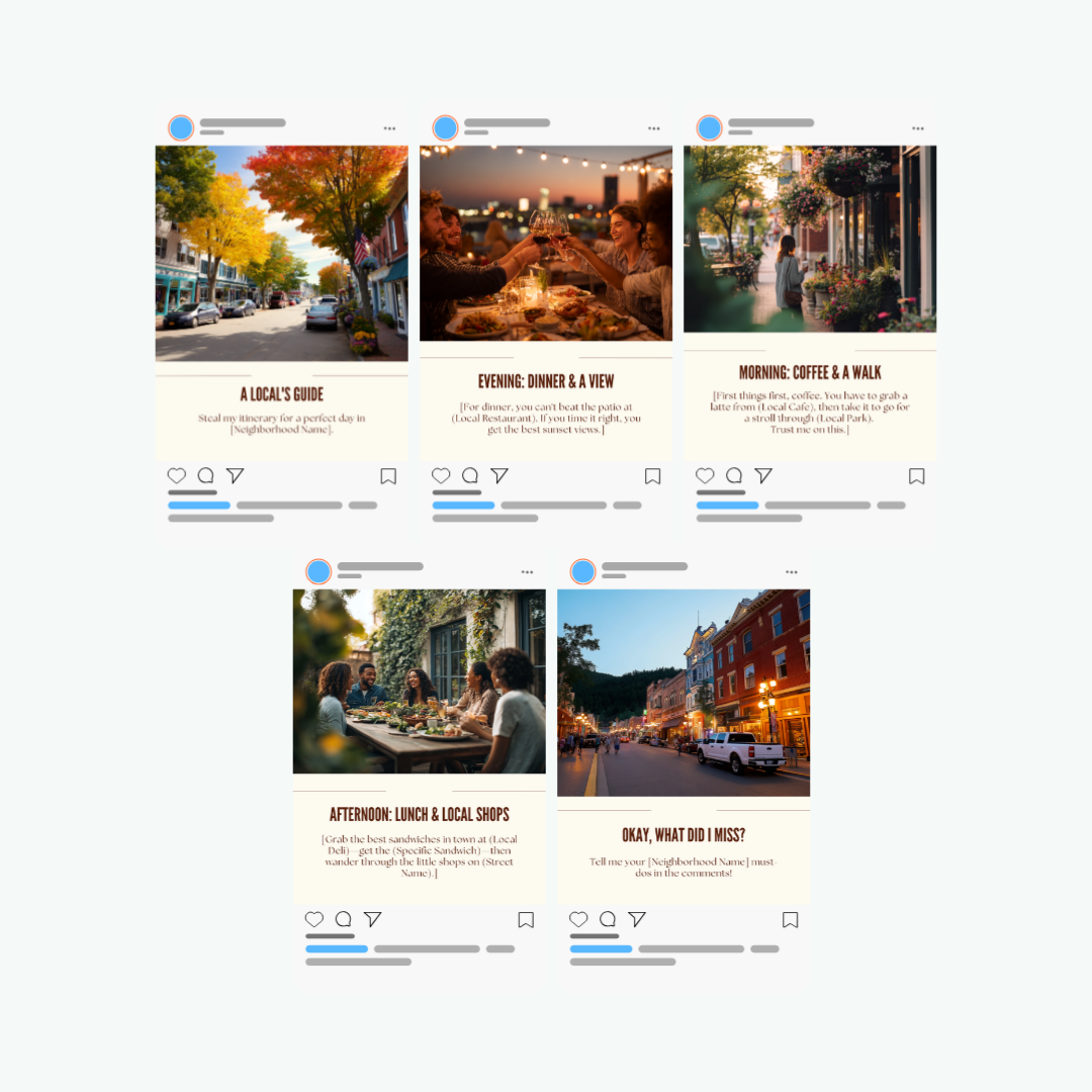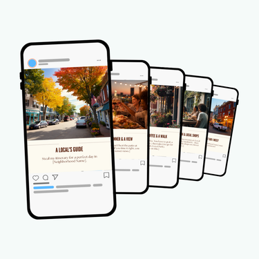Guide your audience through the best of a local neighborhood with this engaging carousel template. Map out a "perfect day" by highlighting favorite coffee shops, parks, restaurants, and local shops. This template helps you sell the lifestyle of a community.