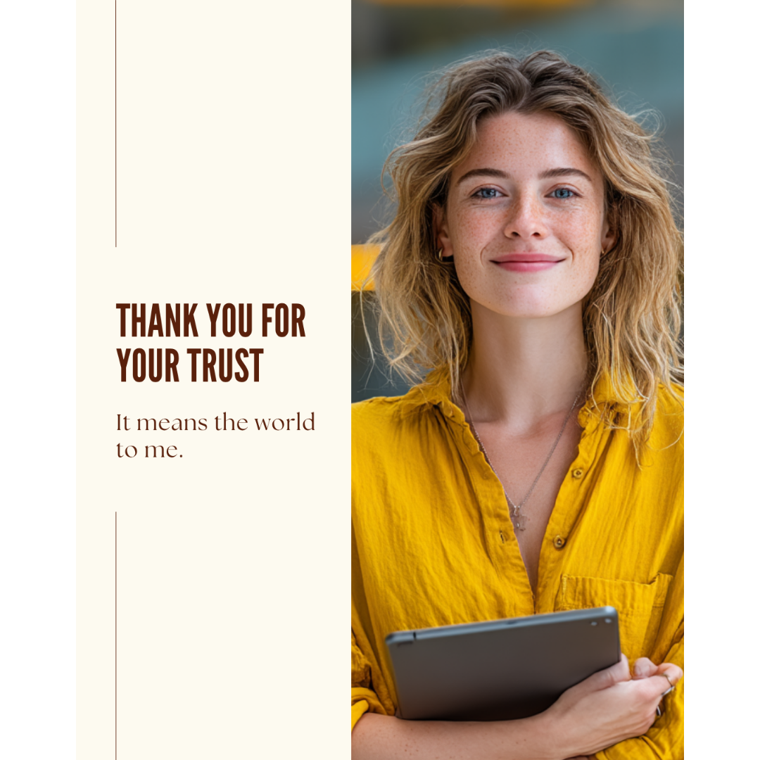 Insert a compelling quote from a satisfied client. Pair it with an aesthetic image that evokes gratitude or success. Use this post to express appreciation for your clients and implicitly encourage others to reach out.