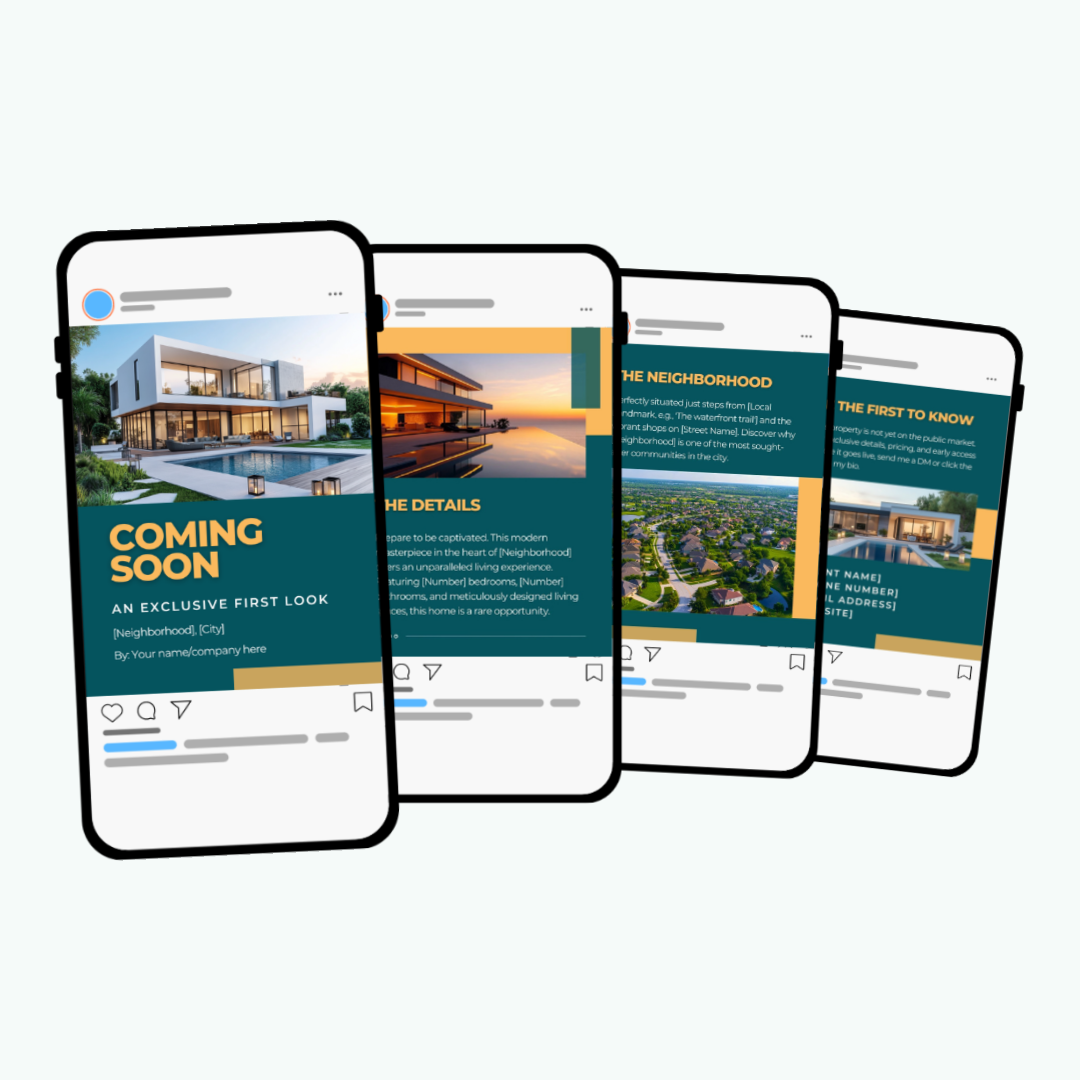 Build anticipation for your new listing with this professional, 4-slide "Coming Soon" carousel template. Perfect for Instagram and Facebook, this template is designed to capture early interest from buyers before your property officially hits the market.