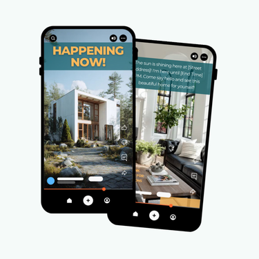 Drive last-minute traffic to your open house with this authentic, "happening now" story template. Designed for a real-time photo or video, this template provides a clean frame and clear text overlays to remind your followers and create a sense of urgency.