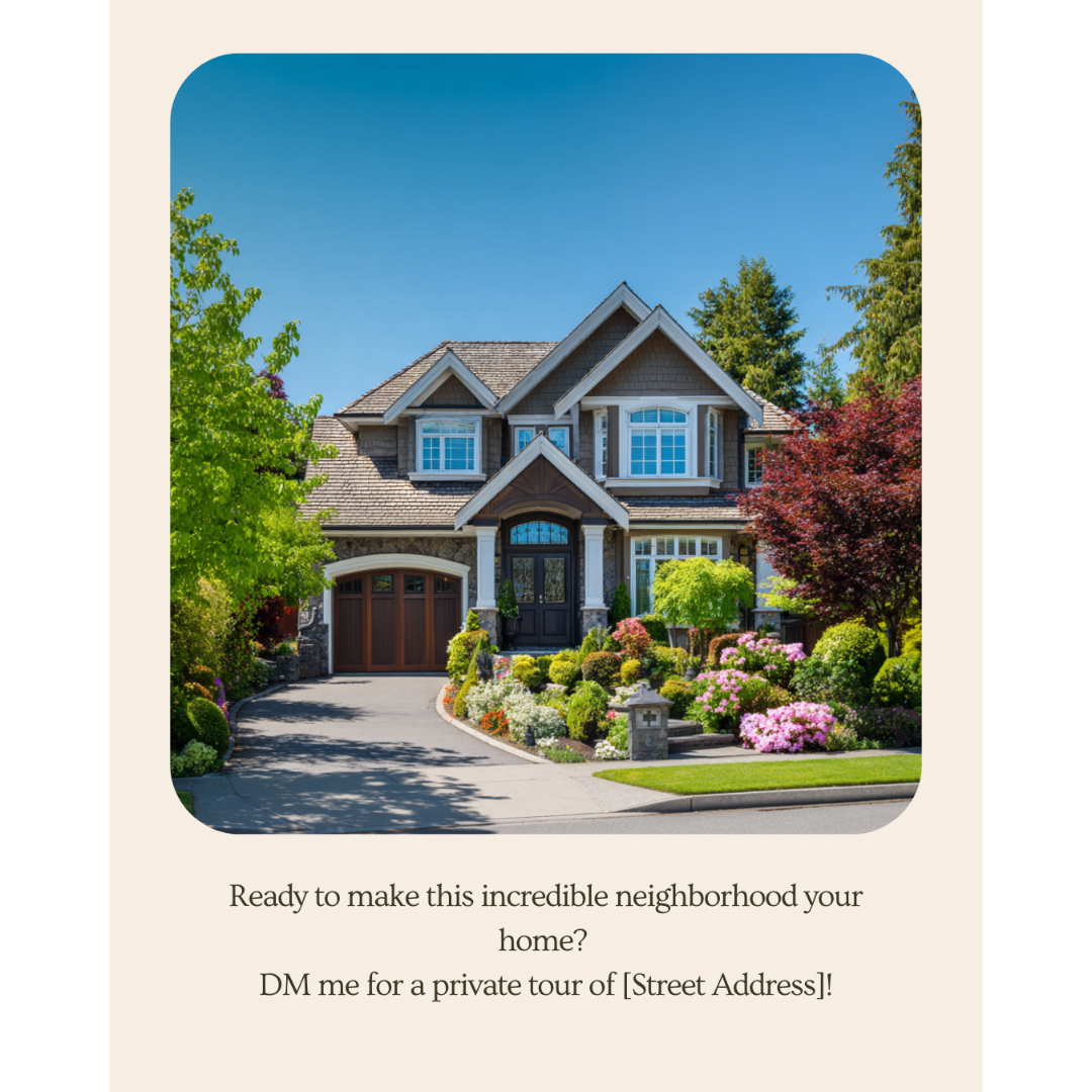 Sell the lifestyle, not just the house. This carousel template is designed to highlight the best features of a listing's neighborhood, from local coffee shops and parks to schools and amenities. It's the perfect tool to show buyers what it's truly like to live in the community.