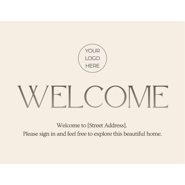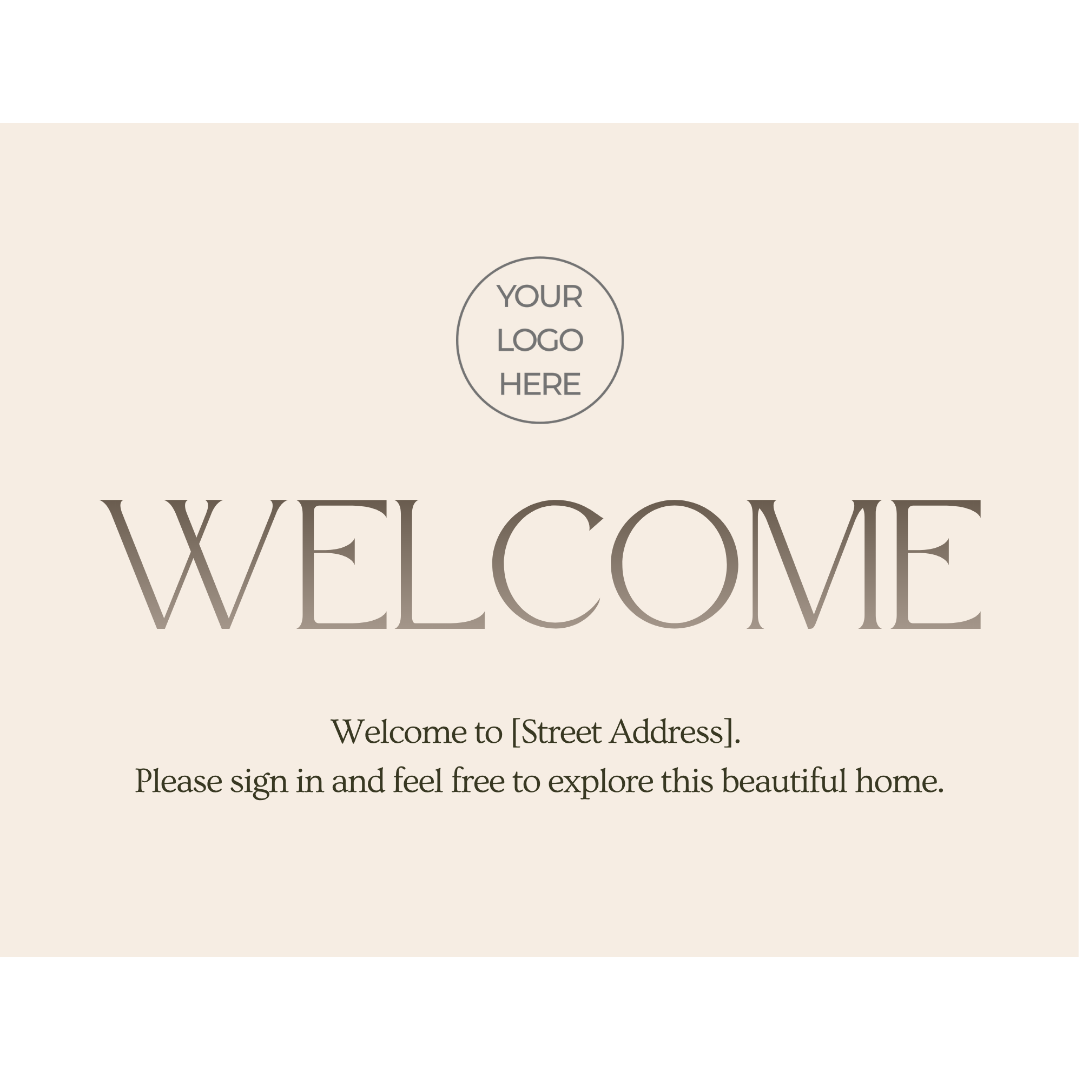 Greet your guests with a clean, professional welcome sign. This 8.5x11" print-ready template is designed to create a polished first impression at your open house, featuring your logo and a clear, welcoming message.