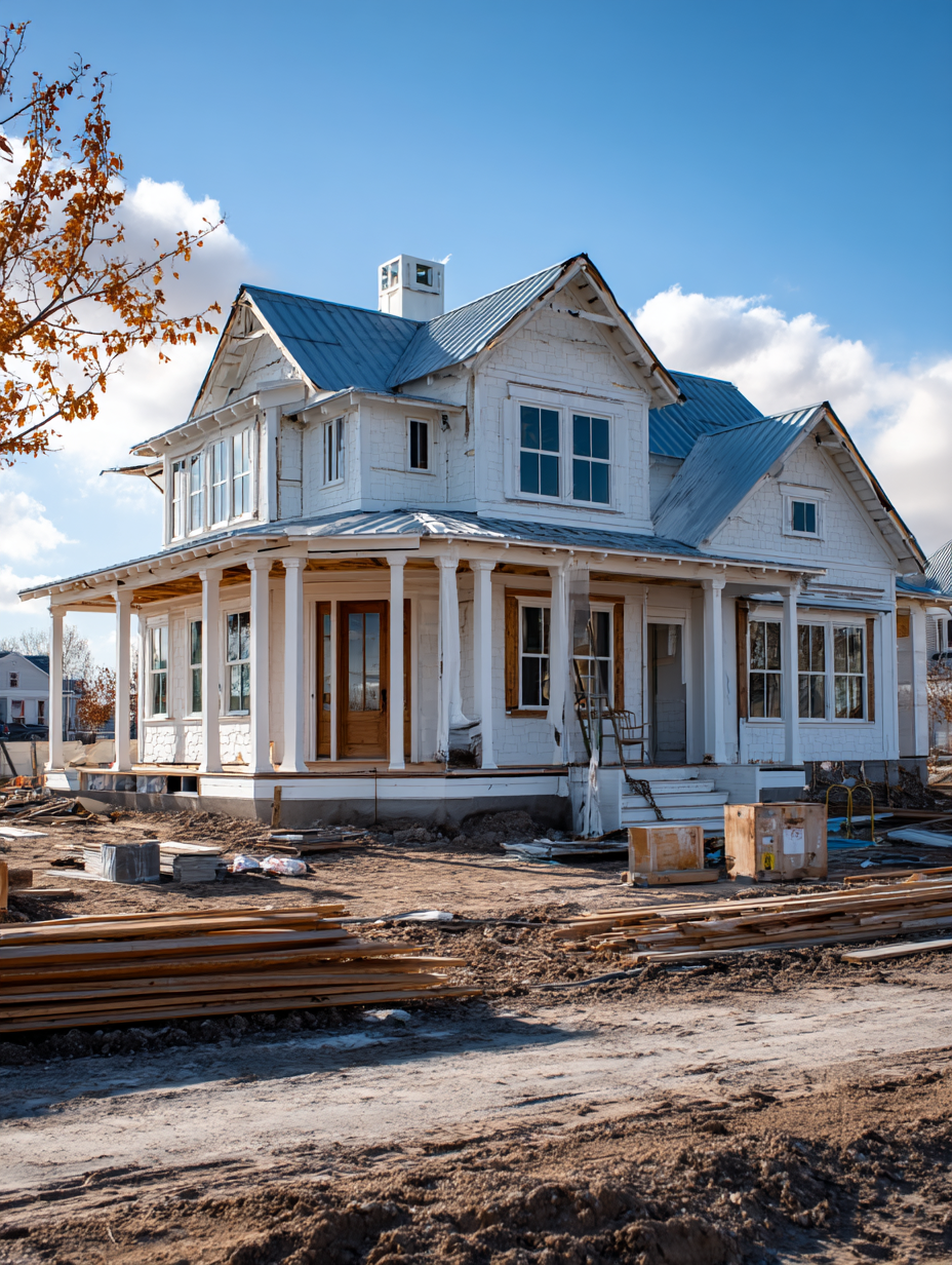 Capture the dream of homeownership with this stunning image of a farmhouse-style home under construction. Perfect for showcasing new listings or promoting construction loans, this photo evokes the excitement of a new beginning and the promise of a beautiful future.