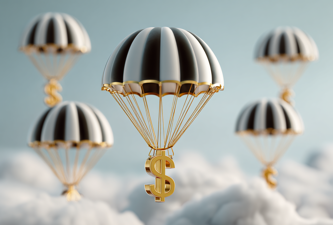 Golden Dollar Parachutes Descending: Financial Opportunity from Sky