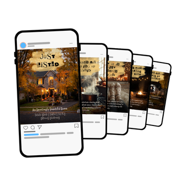 Customize the slides with your property photos, key details, and a Halloween-themed headline. Share it on Instagram and Facebook to make your new listing stand out and engage a wider audience.
