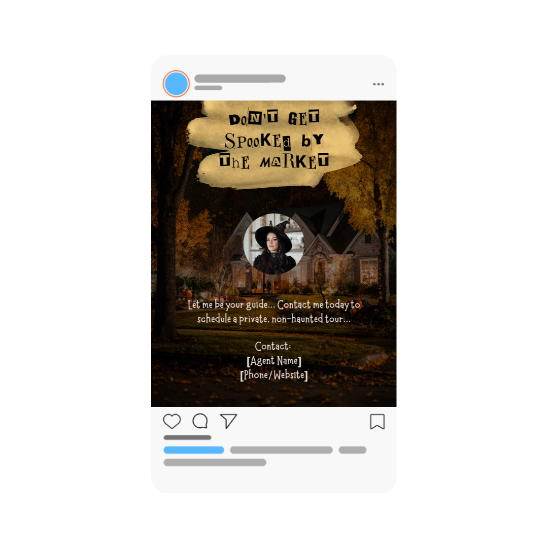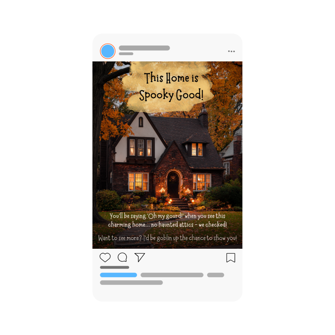 Customize the slides with your property photos, key details, and a Halloween-themed headline. Share it on Instagram and Facebook as a fresh option for your "Just Listed" promotions during the holiday season.