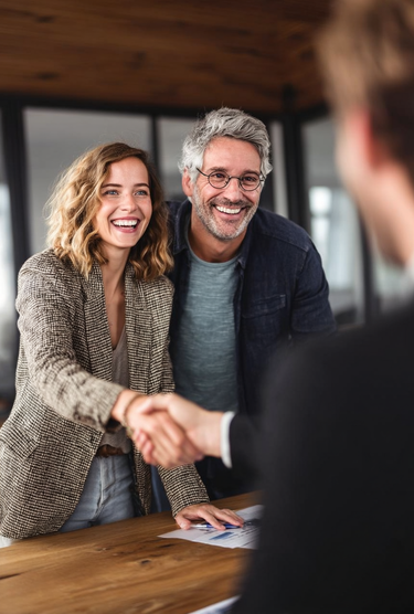 Capture the excitement of a successful closing with this authentic, high-quality stock photo showing happy clients. Perfect for real estate agents looking to build trust and showcase client satisfaction across websites, social media, and marketing brochures. This professional image embodies the joy of achieving real estate goals.