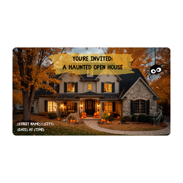Create a cohesive, spooky theme for your "Haunted Open House" event with this social media cover graphic. It's perfect for event pages, Facebook banners, or as a header for related posts, setting the mood for your festive promotion.