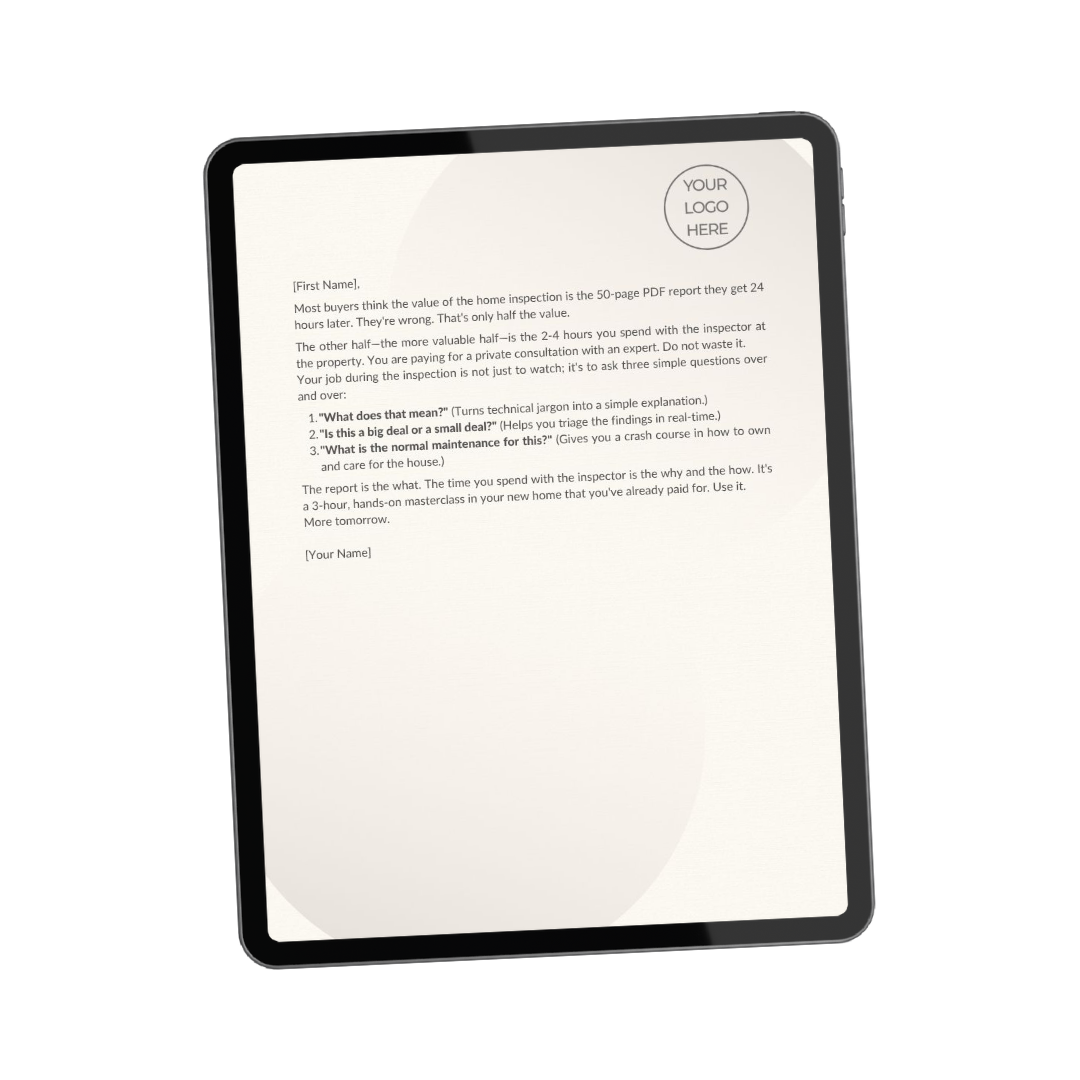 Most buyers think the value of the home inspection is the 50-page PDF report they get 24 hours later. They're wrong. That's only half the value.