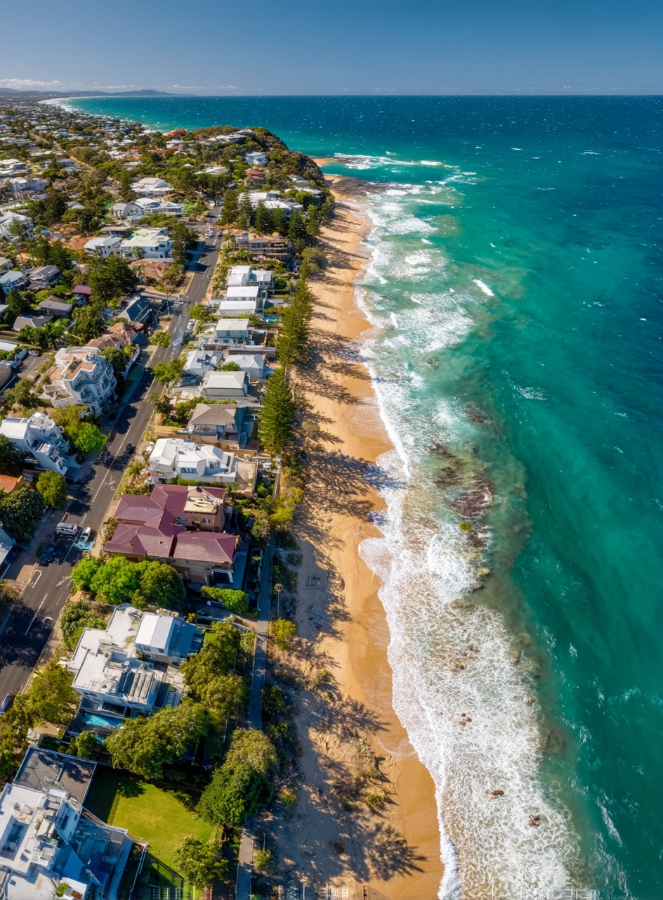 Elevate your property marketing with this stunning aerial photograph, perfect for showcasing the coastal lifestyle. This high-resolution drone shot captures the seamless connection between luxury beachfront homes and the pristine ocean, offering a compelling view that will captivate potential buyers. Use this dynamic imagery to highlight location, proximity to the beach, and the desirable atmosphere of your coastal listings.