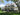 - Lush, vibrant green lawn and mature trees providing natural framing and shade.