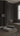 - Dramatic dark charcoal wall paneling and intricate molding.