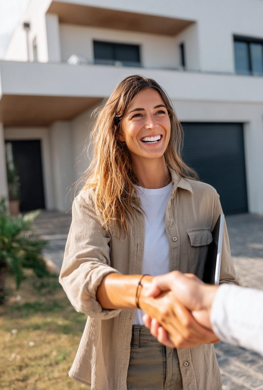 Capture the moment of a successful closing and build instant trust with this authentic real estate imagery. Perfect for your website, social media, or marketing materials, this photo embodies the professional connection and client satisfaction every agent strives for. Elevate your brand with visuals that speak to the heart of the home-buying journey.