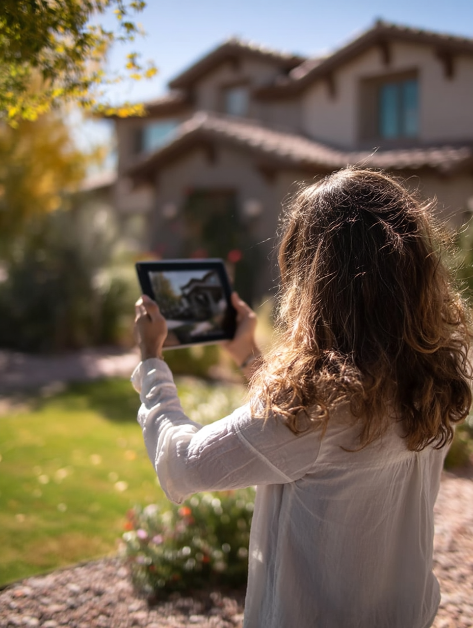 Elevate your real estate marketing with this professional stock image. Perfect for showcasing tech-savvy agents and modern property marketing techniques, this image communicates innovation and attention to detail.