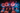 - Five large, distinct firework bursts in alternating red and blue colors.