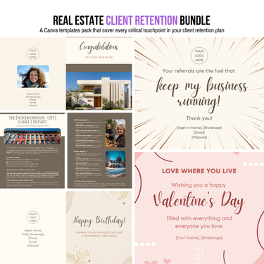 Real Estate Client Retention Bundle | 22 Canva Templates for Agents - Bundle