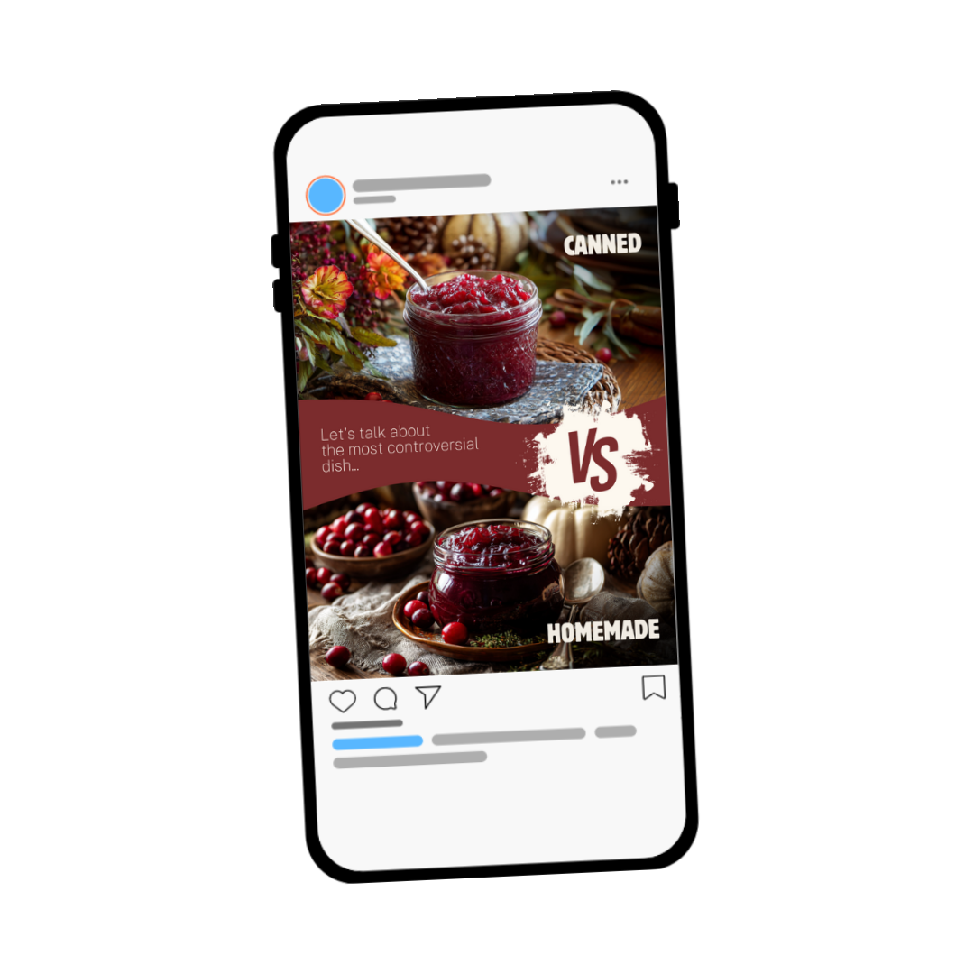 Drive tons of comments with this classic Thanksgiving debate template. The controversial "canned vs. homemade" cranberry sauce question is an easy and fun way to boost engagement.