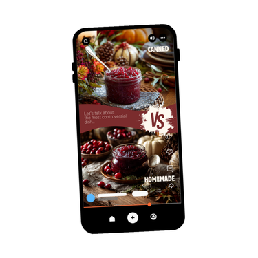 Drive tons of comments with this classic Thanksgiving debate Reel. The controversial "canned vs. homemade" cranberry sauce question is an easy and fun way to boost engagement with a quick, animated video.