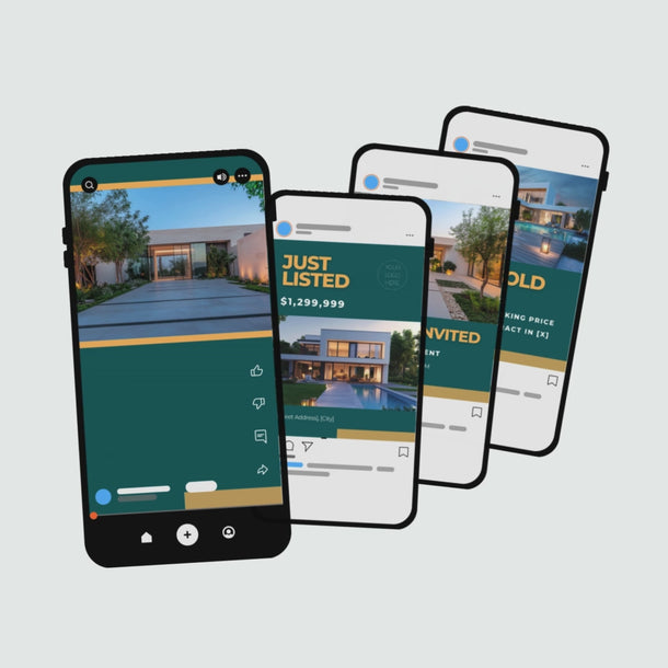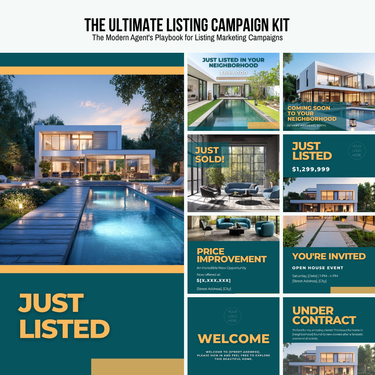 This is a complete, "done-for-you" toolkit of Canva templates that covers all five stages of a modern listing marketing campaign. Every asset is designed to work together, ensuring perfect brand consistency from start to finish.