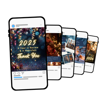 Showcase your success and thank your clients with this professionally designed "Year in Review" carousel. This template provides a powerful framework to share your annual achievements, express gratitude for your clients' trust, and build powerful social proof for the year ahead.