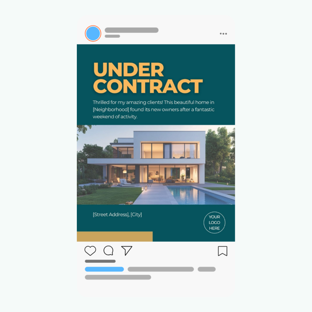 Announce your success on social media with this clean and professional "Under Contract" post. This graphic builds momentum and signals to your followers that you are an active and effective agent in a moving market.