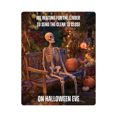 Add humor to your Halloween marketing with this "Waiting Skeleton" real estate meme. It's a relatable and funny way to comment on market conditions or buyer/seller patience, sparking engagement with a lighthearted touch.