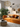 - Vibrant orange corduroy sectional sofa as a central statement piece.
